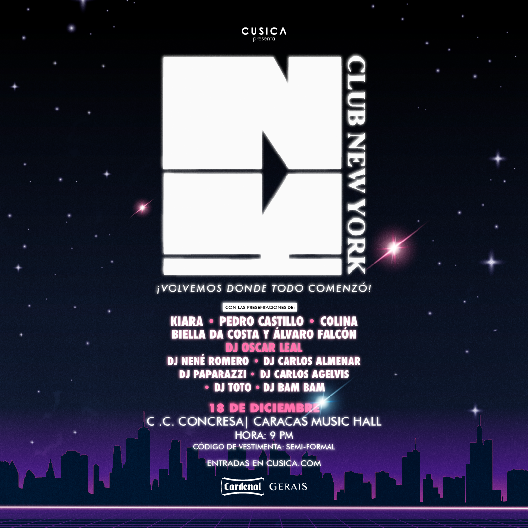New York New York, la legendaria discoteca de los 80 vuelve por una noche a la misma locación donde existía. El Caracas Music Hall de Concresa se mete en una máquina del tiempo y se transforma en el club que puso a bailar a toda una ciudad. Ven y vive toda una experiencia de rumba retro con todos esos DJ que pusieron a la gente a bailar en este lugar histórico para la música. Si siempre has escuchado historias de la auténtica New York New York, ven y siente la magia de la mano de sus propios creadores.